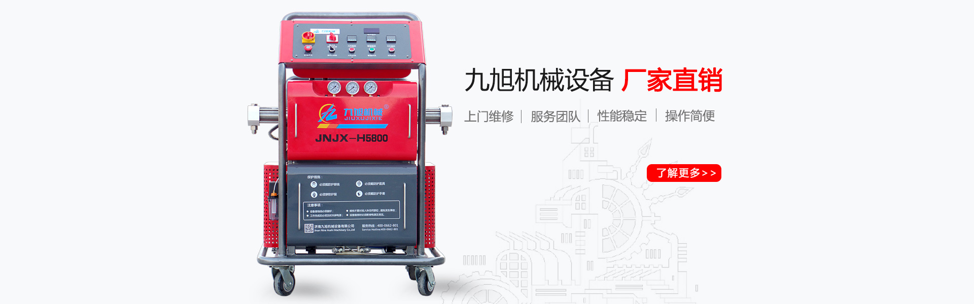 山東九旭機械科技有限公司歷經(jīng)十幾年的發(fā)展,已成長為聚氨酯設備行業(yè)頗具實力的設備制造廠家之一。企業(yè)主要產(chǎn)品:聚氨酯噴涂機、聚氨酯發(fā)泡機、聚氨酯澆注機、聚脲噴涂機等,關于設備配件(聚氨酯高壓噴槍、槍嘴、加熱管道、料塊、摩擦副、增壓泵、混合式、提料泵等)也是堅持最好的質(zhì)量服務用戶,并承接:外墻保溫、冷庫保溫發(fā)泡等工程...